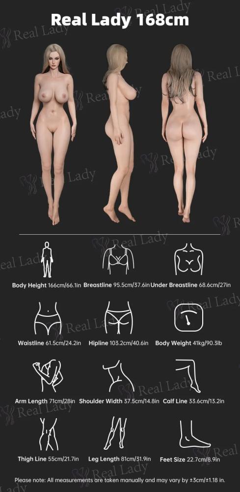 Standing at 168 cm, Adela embodies the sensual harmony of form and feeling. Her E-cup bust create a natural rhythm of elegance and allure. The liquid platinum silicone gives her skin a velvet-like texture—warm, resilient, and achingly real under your fingertips. Every curve, every motion flows like a silent sonata, revealing the purity and fire of a woman who lives for passion, not perfection.